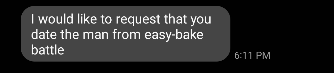 Last night I get a text from my friend Nina who was apparently watching Easy-Bake Battle on Netflix. I had no idea the show existed, primarily because when I’m watching Netflix, it’s the same three shows/specials over and over again because of who I am as a person. I’m also not big on reality shows/competitions so it never would have hit my radar.