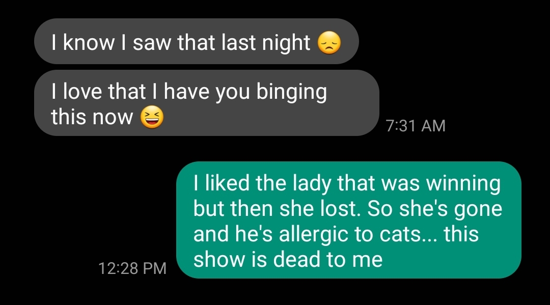 So, I guess that’s my review of the show. Come for the adorable host and stay out of sheer spite? Honestly, it’s a good time and I really enjoy it. I’m watching it as I write this because I’m not a quitter.